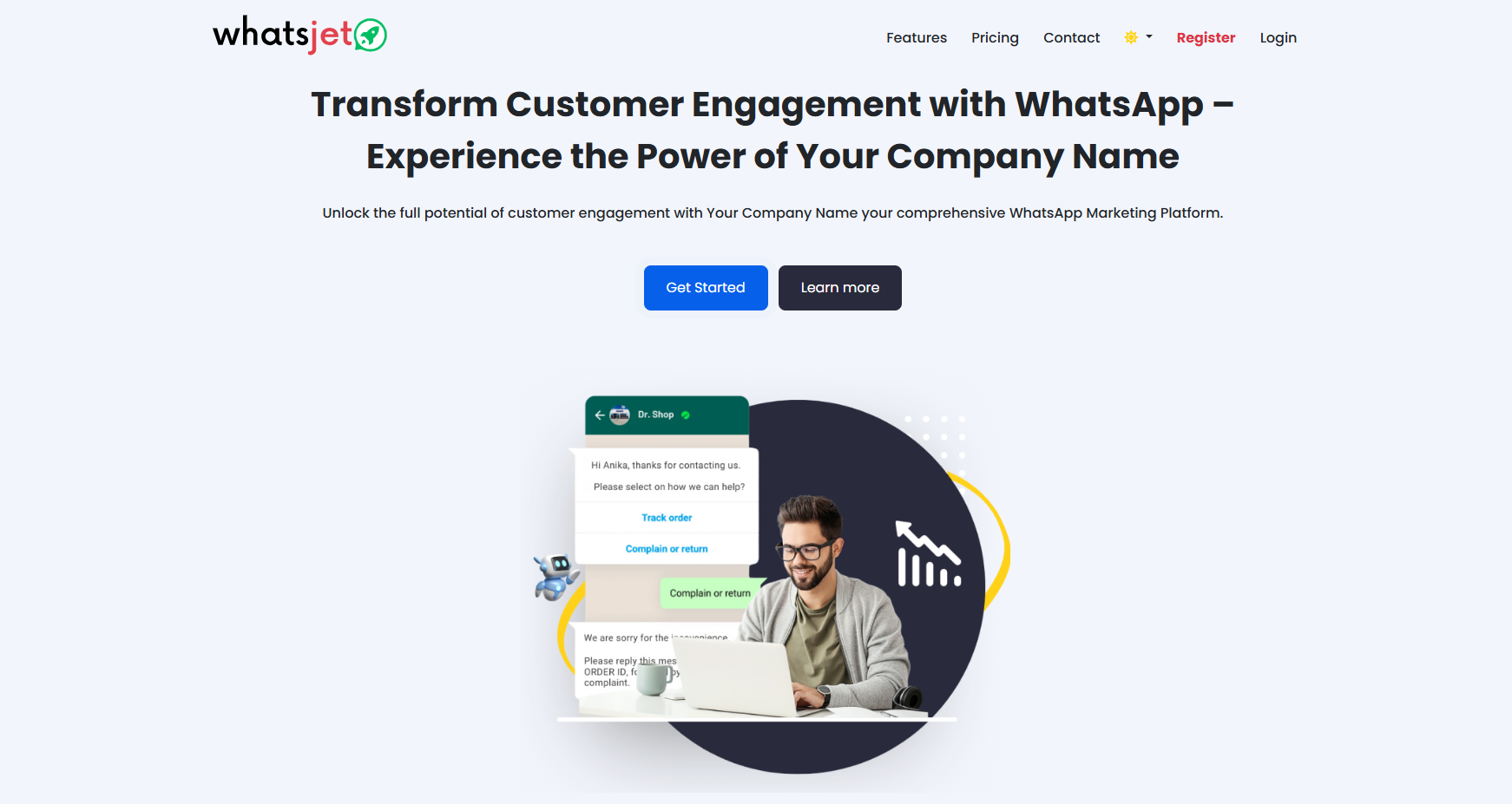 WhatsJet is a WhatsApp Marketing & Automation Script built using PHP (backend) + Node.js (for WhatsApp connection).